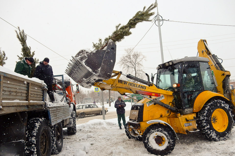 На участок, где планируется провести зимнюю посадку, собирается техника и специалисты по озеленению нашего города