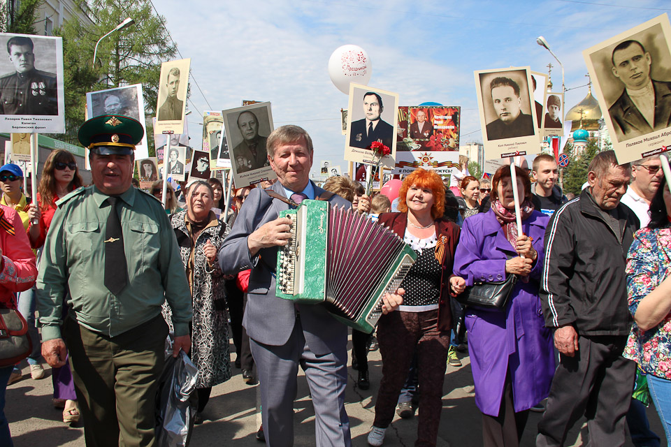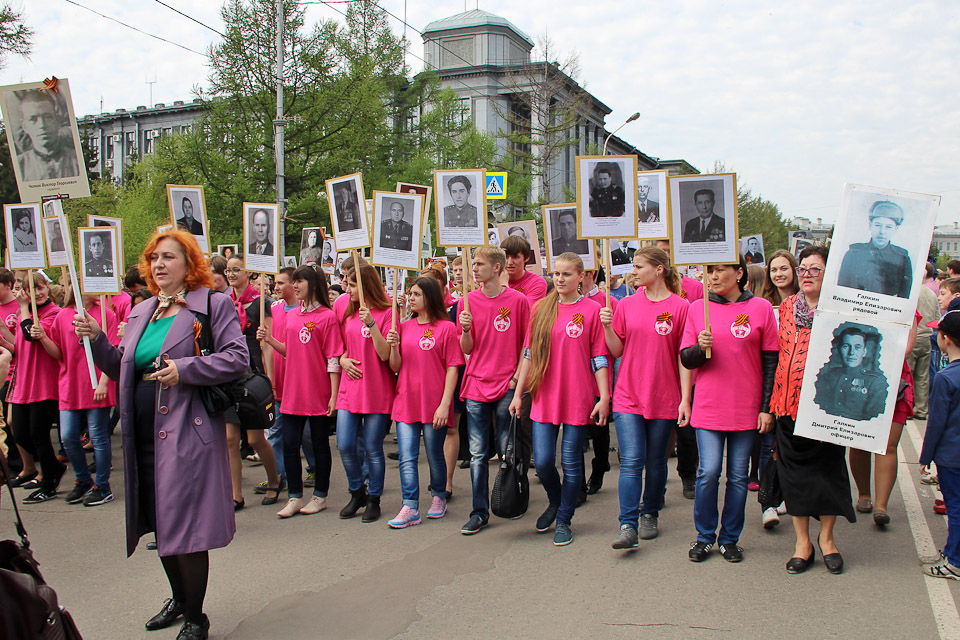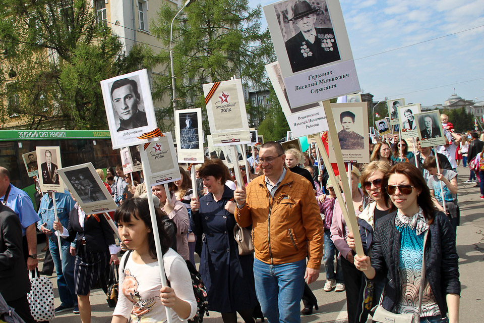 Порядка двадцати тысяч омичей прошли колонной по центральным улицам города с портретами тех, кто приближал Великую Победу. Акция показала, что каждая российская семья бережно хранит память о подвигах своих родных — ветеранах войны и тружениках тыла.