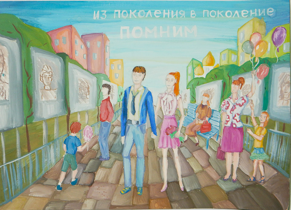 Из поколения в поколение помним. Ольга Данильченко(СОШ № 63), I место в номинации «Лучший эскиз социальной рекламы» (11-14 лет)