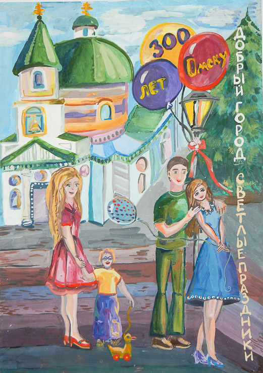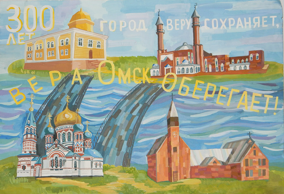 300 лет город веру сохраняет. Марина Кудренко (СОШ № 118), III место в номинации «Лучший эскиз социальной рекламы» (11-14 лет), спецприз Омской епархии РПЦ