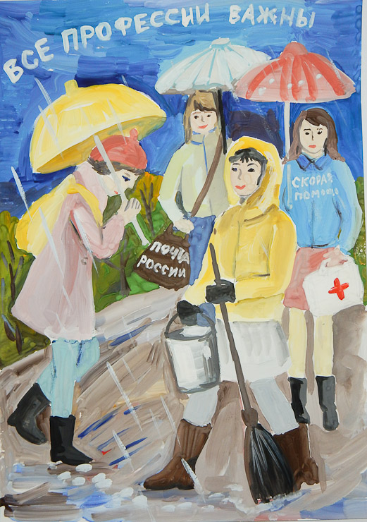 Все профессии важны. Анастасия Крюкова (СОШ № 63), II место в номинации «Лучший эскиз социальной рекламы» (6-10 лет)