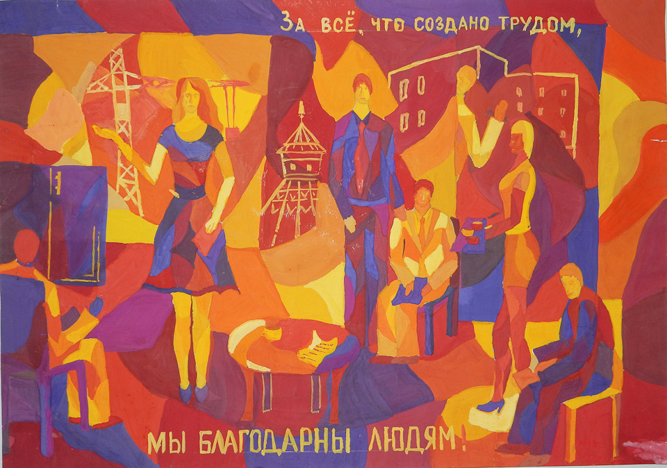 За все, что создано трудом, мы благодарны людям. Анастасия Головня (ДХШ № 2), II место в номинации «Лучший эскиз социальной рекламы» (15-17 лет)
