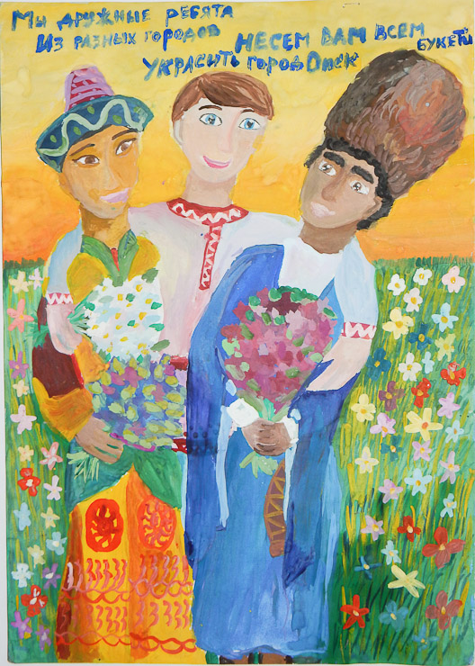 Мы дружные ребята из разных городов. Карина Новикова (СОШ № 38 с УИОП), спецприз омского отделения Российского комитета защиты мира