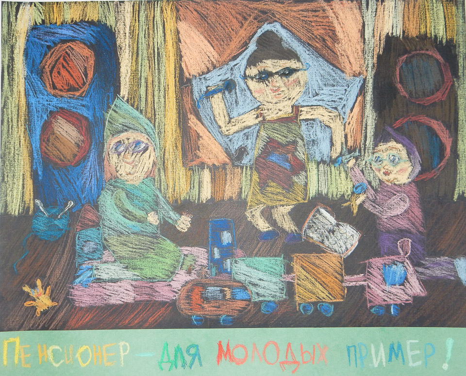 Пенсионер — для молодых пример. Елена Зюськина (ДШИ № 14), I место в номинации «Лучший эскиз социальной рекламы» (6-10 лет)