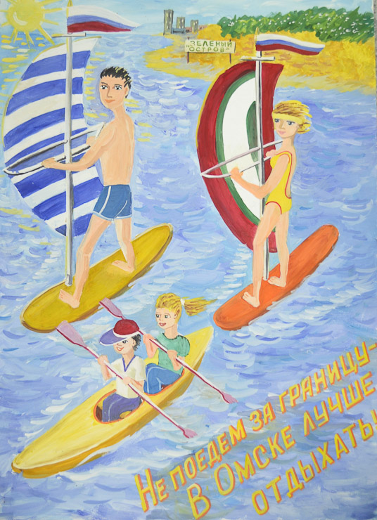 Не поедем за границу, лучше в Омске отдыхать. Оксана Макеева (СОШ № 118), лауреат в номинации «Лучший эскиз социальной рекламы» (15-17 лет)