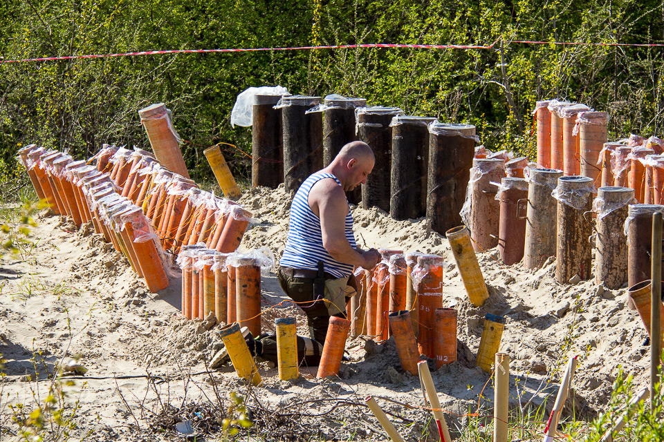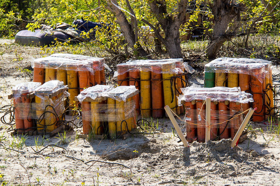 Пиротехнические заряды монтируются на специально огороженной площадке