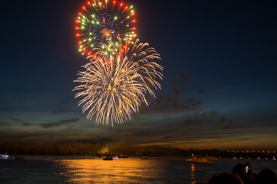 Фейерверк традиционно завершает праздничные мероприятия Дня Победы. Чтобы причудливые узоры в небе увидела вся набережная, пиротехнику устанавливают на острове напротив бульвара Победы.