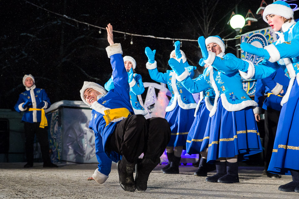 28 декабря Главная городская елка на территории Омской крепости открылась яркой театрализованной программой в исполнении муниципальных творческих коллективов.