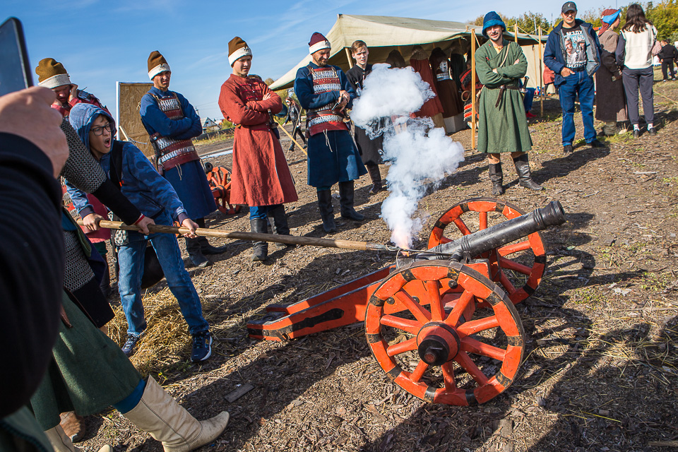 Примерить доспехи служилых людей, подержать в руках оружие, пострелять из пушки, попробовать себя в лучном поединке смогли все желающие. Ярким финалом программы стало шоу «Огненные стрелы».