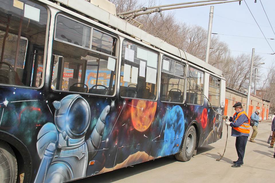 В честь Дня космонавтики и празднования 60-летия полета в космос Ю. А. Гагарина, на территории филиала «Троллейбусное депо» МП города Омска «Электрический транспорт» Омское региональное отделение Всероссийской общественной организации «Молодая Гвардия Единой России» провело акцию «Поехали».