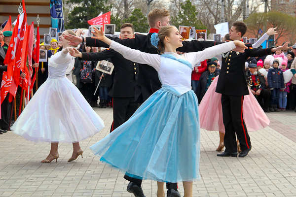 Историко-музыкальный фестиваль с танцевальной площадкой для разучивания Вальса Победы (с участием курсантов речного училища и клуба «225 автотранспортный батальон»).