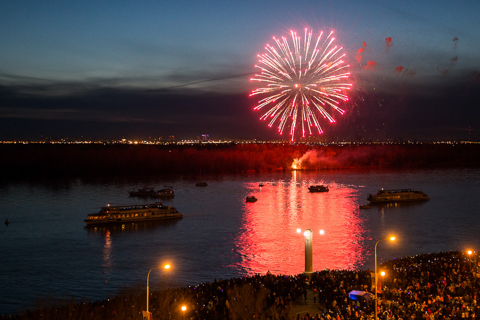 Десятиминутная пиротехническая программа как яркое завершение праздника в Советском парке, на Иртышской и набережной Тухачевского.
