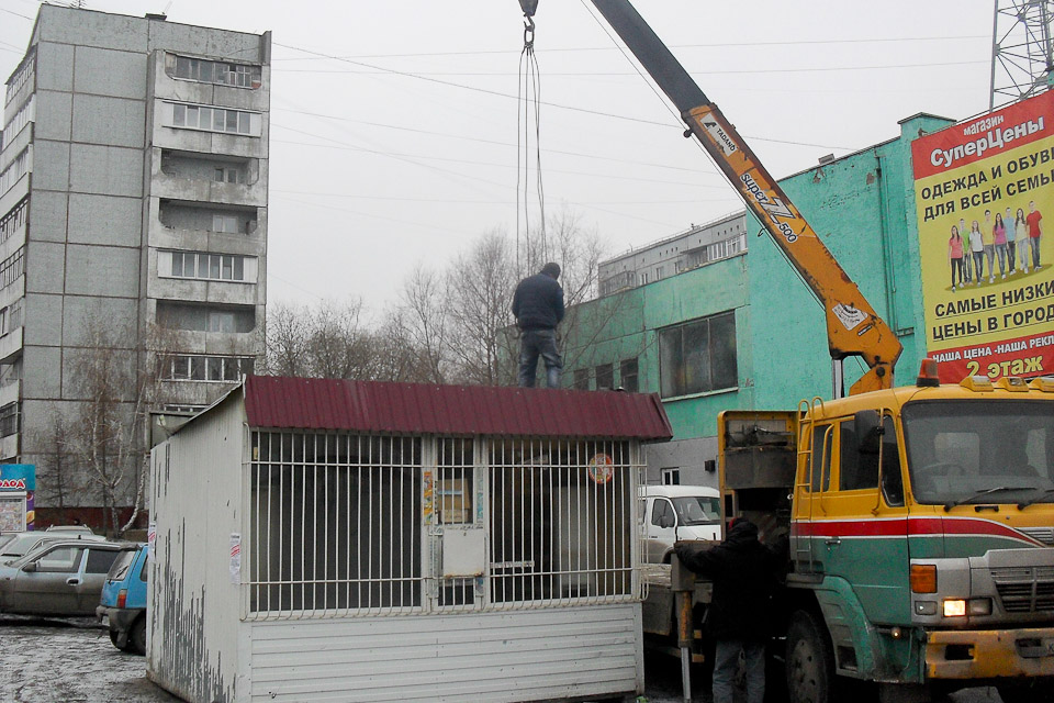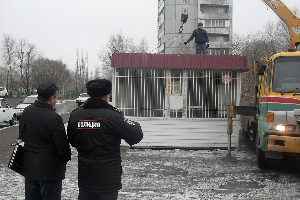 Сразу несколько незаконно установленных киосков и павильонов с продуктами питания исчезли с улиц города. Большая часть из них на этот раз была расположена вблизи высших учебных заведений по улице Некрасова и по проспекту Мира. Как водится, некоторые были вывезены в принудительном порядке, а некоторые были поспешно вывезены владельцами в неизвестном направлении.