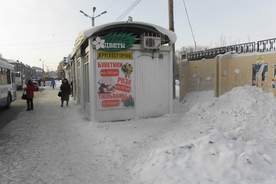 В феврале от незаконно установленных торговых павильонов были освобождены участки земли рядом с домами по ул. Мира, 60 и пр. Маркса, 43 б.