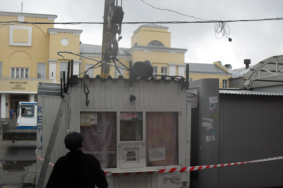 Продолжается вынос незаконно установленных киосков с Привокзальной площади. Всем предпринимателям были вынесены соответствующие постановления, и у них была возможность добровольно освободить незаконно занимаемую территорию. Остались только те, кто до последнего нарушает закон. На демонтаже конструкций присутствовали представители полиции, а также специалисты-электрики.