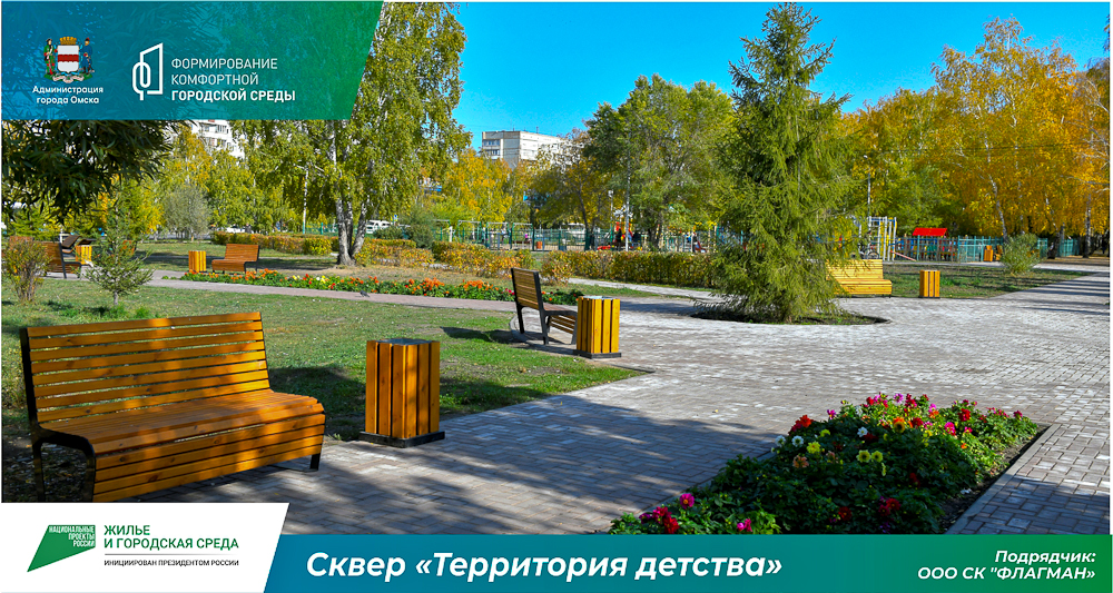 В марте 2023 года сквер на улице Ярослава Гашека получил новое название – Территория детства. Благоустройство многофункционального пространства с современным игровым и спортивным комплексами, фонтаном и березовой рощей предусматривало следующие виды работ: