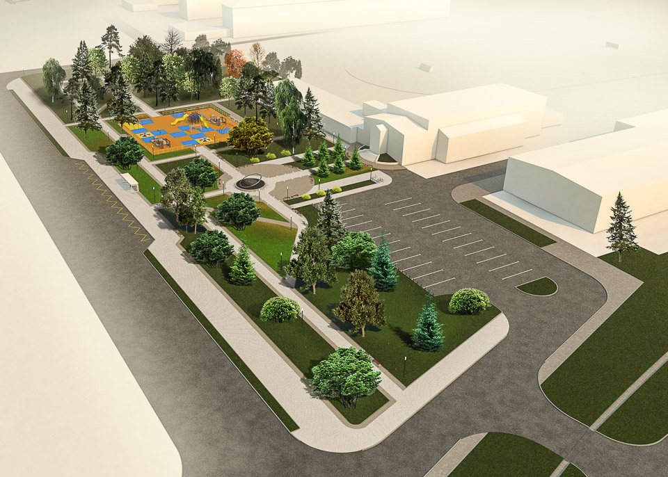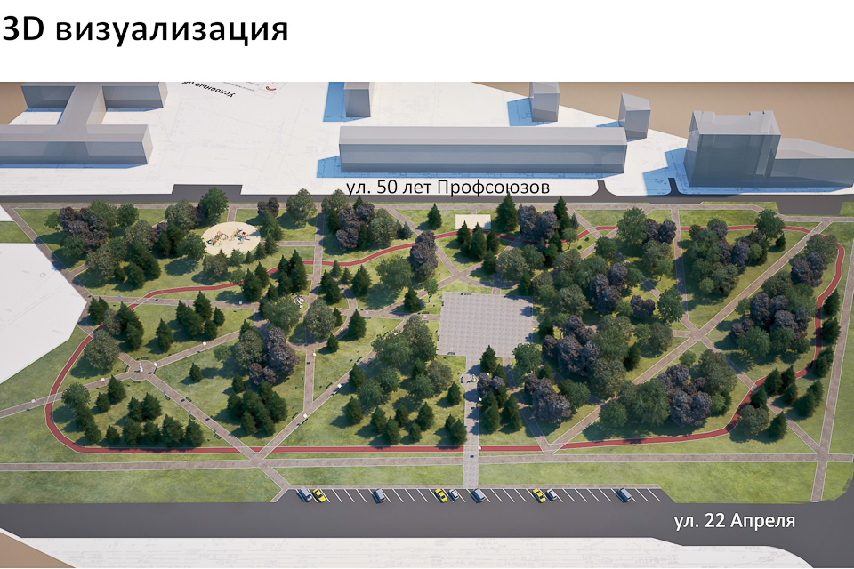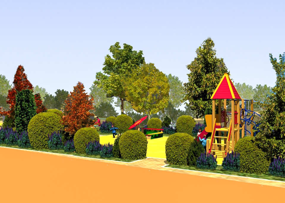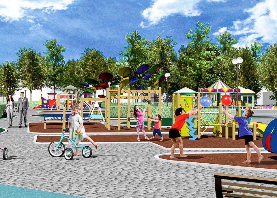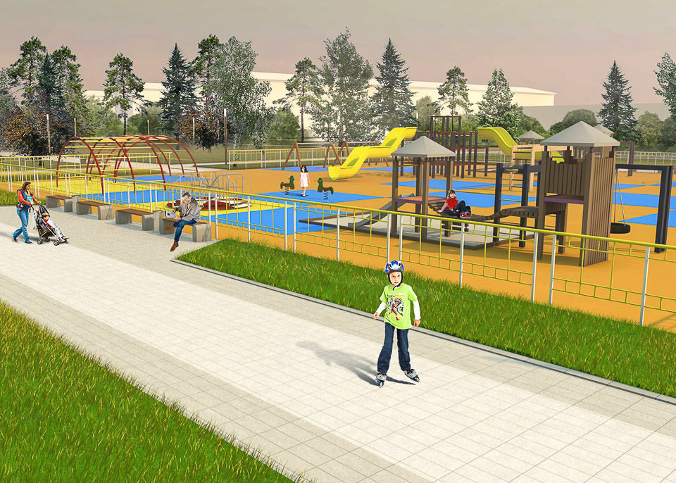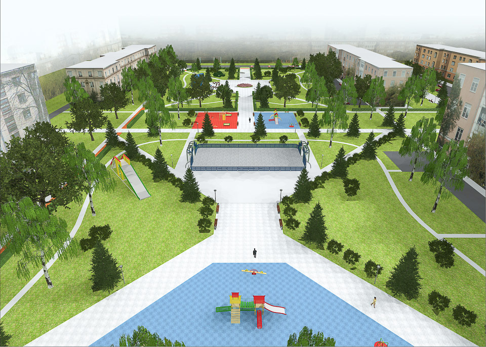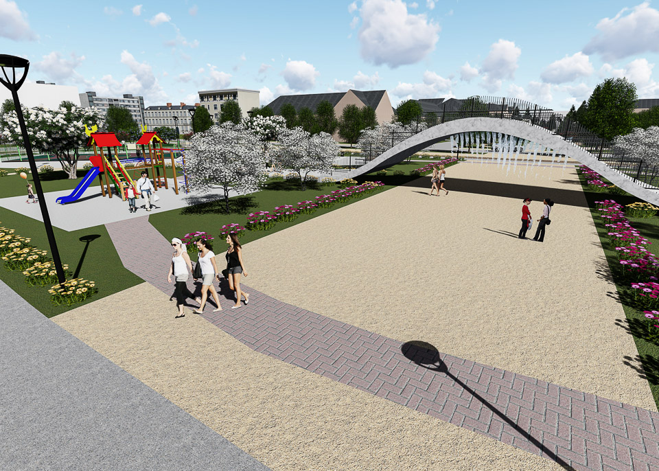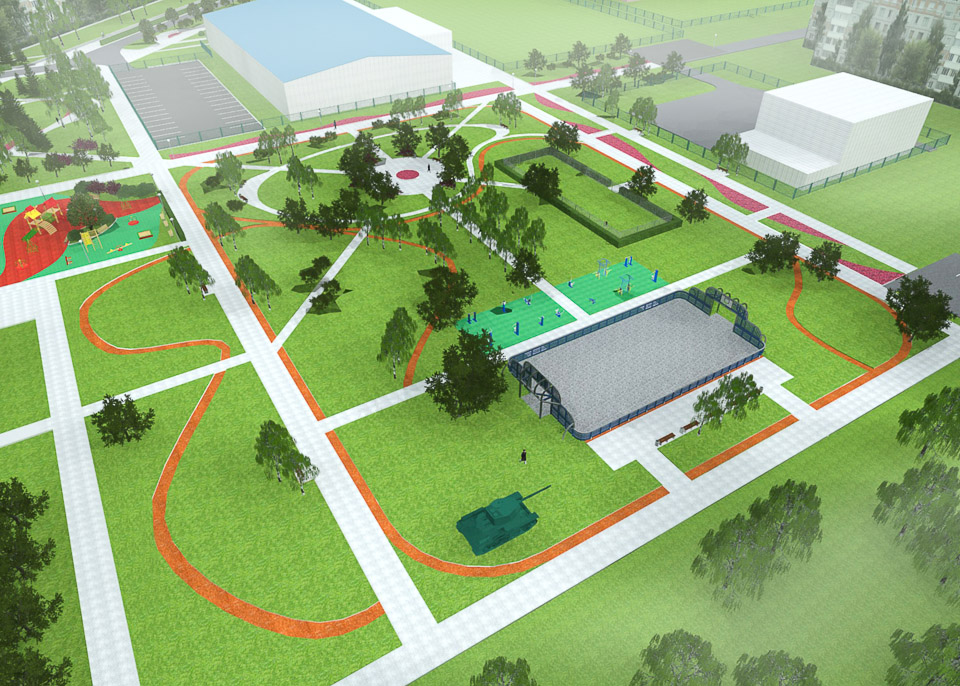 Начать предлагается с обустройства входной группы. Затем в парке появится детская площадка, спортивные сооружения, пешеходные дорожки и тенистые аллеи.