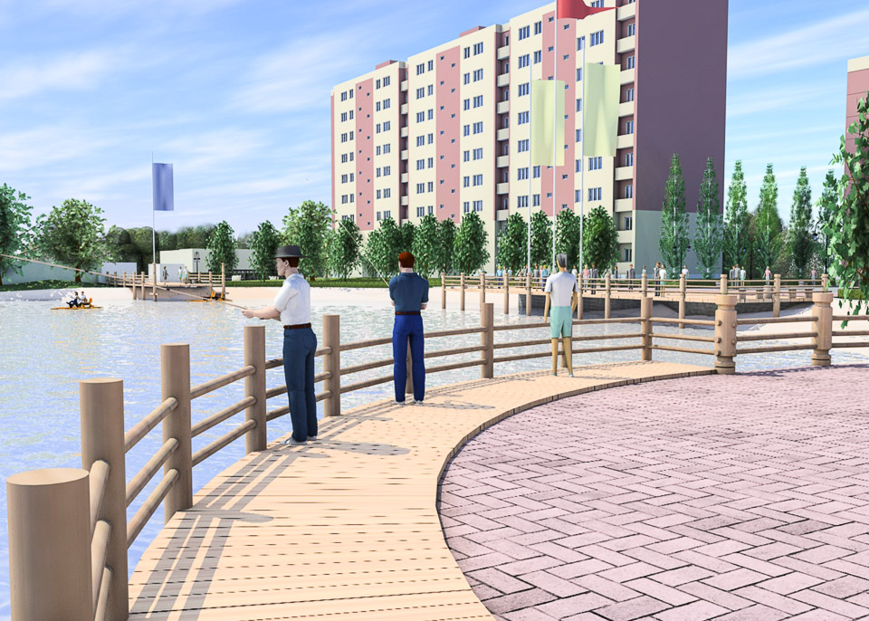 Удобные зоны отдыха, прокат лодок и катамаранов, смотровые площадки, специально отведенные места для любительской рыбной ловли — так может преобразиться территория вокруг водоема, если за него проголосуют горожане. Не забыли проектировщики и о том, что рядом находится детская поликлиника № 4. Специально запланированы игровые площадки с оригинальными деревянными малыми архитектурными формами. Естественно, проработан вопрос озеленения — изюминкой должны стать белые ивы и пирамидальные тополя.