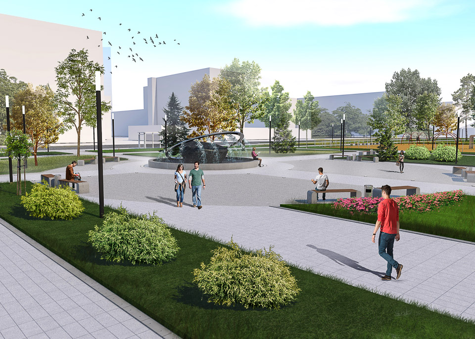 Жители близлежащих жилых микрорайонов по достоинству оценят новое озеленение сквера с его уютными для прогулок тропинками и освежающий фонтан; велодорожку, детскую и спортивную площадки, малые архитектурные формы — все это составные части дизайн-проекта, представленного на суд омичей. Кстати, имеющиеся зеленые насаждения будут максимально сохранены.