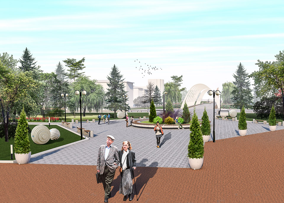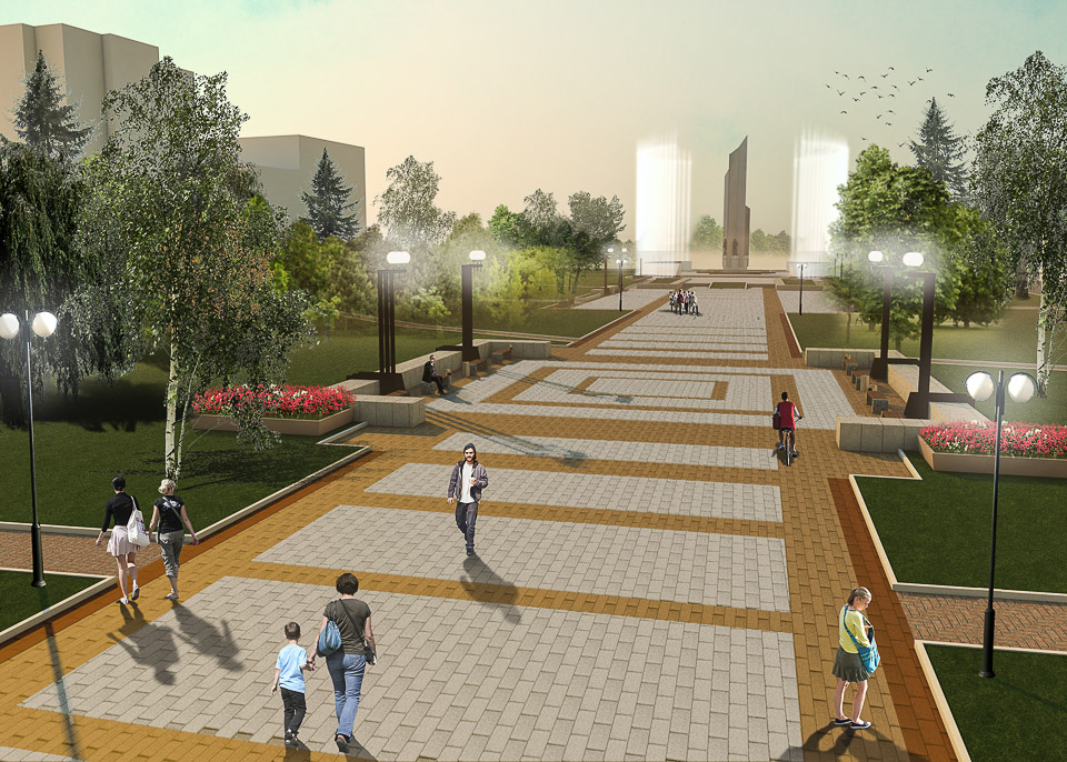 Что не устраивает горожан? Тротуары — разбитые, озеленение — хаотичное и явно недостаточное, пешеходная зона совсем не соответствует современным требованиям к безбарьерной среде. Все это учли при подготовке дизайн-проекта. Он решает две задачи: мемориальный комплекс благодаря найденным архитектурным решениям станет еще более величественным, и при этом горожане получат еще одно по-настоящему удобное и комфортное место для семейного отдыха с оригинальным освещением, удобными тротуарами и пешеходными дорожками. зеленый и тенистый сквер будет одинаково доступен и для инвалидов, и для матерей с колясками.