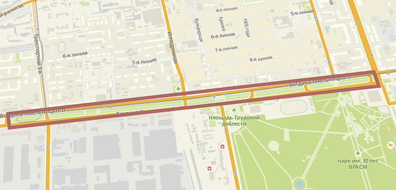 Улица Богдана Хмельницкого — одна из основных транспортных артерий Омска. От многих других улиц ее отличает пешеходная аллея с богатой зеленой растительностью, разделяющая проезжую часть. Свой привычный вид улица приобрела в 1950-х годах, а в 1954 году она получила и новое имя — улица 10-я Линия стала улицей Богдана Хмельницкого. Широкий бульвар служит удобным пешеходным маршрутом до ПКиО им. 30-летия ВЛКСМ и к стеле «Город трудовой доблести». Асфальтированная дорожка в центре аллеи давно нуждается в обновлении, а зеленые насаждения — в дополнительном внимании и уходе. Предложенное благоустройство улучшит визуальный облик улицы и сделает прогулки по ней еще более привлекательными.